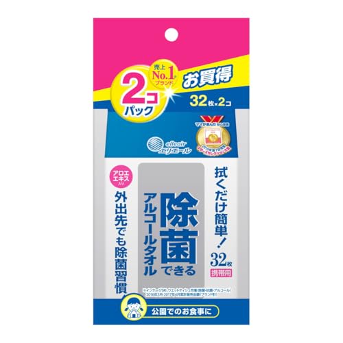 エリエール 除菌できるアルコールタオル 携帯用 32枚×2P入り のクチコミ