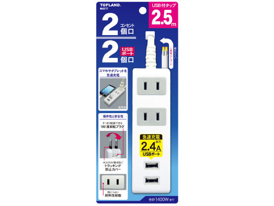 【デザイン】 質感は安っぽいですが、シンプルなのはいいと思います。 【機能性】 USBは2.4Aとのことですが、他に持ってる2.4A品ほど充電早くない気がします(ワットチェッカー持ってないので実測は不明)。 【安定性・耐久性】 初のメーカーでちょっと不安はありましたが、大手家電量販店やコンビニでも置いているので大きな問題は無いと想像し購入。 特に不具合なく使えています。 【設置性】 結局USB2ポートでは足りなくなりコンセント部分にも機器付属アダプターを挿していますので、小さく軽い本機はすぐに横倒しにコケてしまいます。 【総評】 アダプターと電源タップをスッキリ一つにしたくて購入しましたが、前記の様に結局アダプターも挿してごちゃごちゃに。 USB-Cが普及して来た今もアダプター挿せば使えているメリットはありますが。