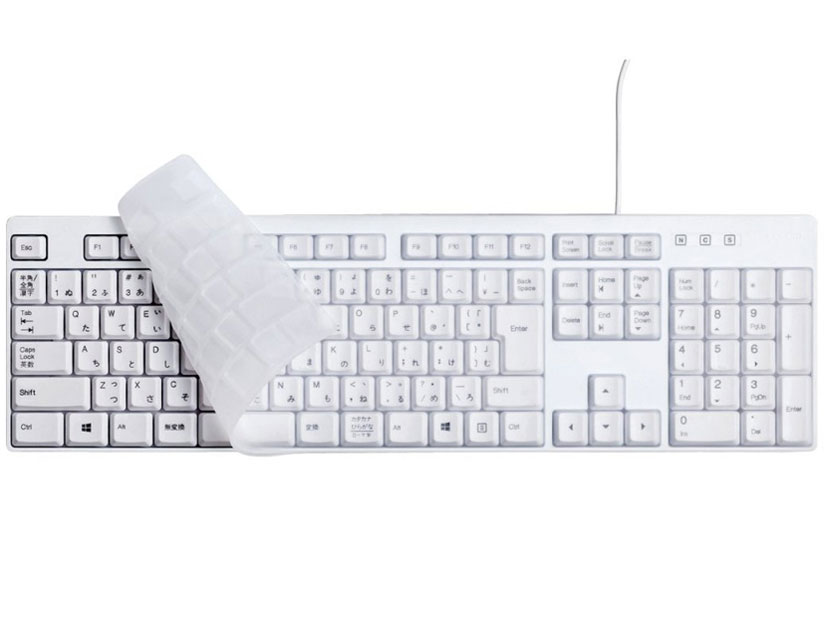 初めて買ったシリコンカバーキーボードがコレでした! 確かにキーボードはゴミが入りやすく変色しやすい(特に白)ので掃除が大変です! このシリーズは結構、キーボードが横長だったので机のスペースを使いました。 使ってみた感想ですが、最初はキータッチに少し違和感があるので 慣れるまで、時間がかかるかもしれません! カバーは消耗品のようで、確かに長く使っているとカバーの方が汚れてきます! キーボードの掃除が面倒な人には、こっちがおススメかもしれません!