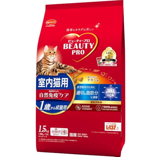 ビューティープロ キャット 成猫用 1歳から チキン味 1.5kg(300gx5)