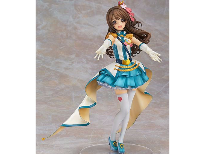 島村卯月のクリスタルナイトパーティVerですが、衣装の再現性はよくできていると思いました。胸のバッジや靴のマークに髪飾りなども細かく作られていて、塗装もしっかりとされいます。付属は台座のみになりますが、時計のついた小さめの円形の台座が彼女にはよくあっていましたね。GOODSMILE ONLINE SHOPで買うと特性ステージ風の階段台座がついてきますが、こちらはそこまで欲しくはなかったので自分は、普通の台座で満足していますね。