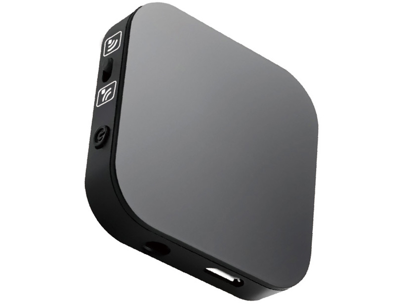 - 有線のイヤホン&スピーカーをワイヤレスにする受信機と、Bluetoothイヤホン&スピーカーに音声データを送る送信機が一体になった送受信機。