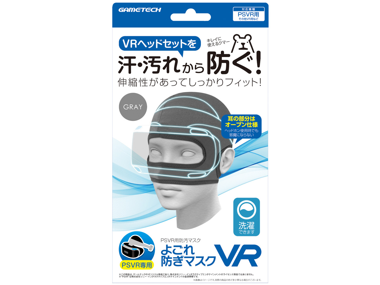 見たお店で選択肢がなかったので、もっと色やメーカーがあったことにショックを受けています。 白じゃなくて黒や紺がよかった。 【デザイン】 普通。 メタルギアのザコ兵みたい。 【使用感】 これだけ装着をしても今の時期はエアコンを切ると汗が出てくるし、蒸れます。 恥ずかしいですが、装着した画像を見ていただければわかります。 頭回り53センチです。 目出しの部分は問題ないのですが、鼻との距離が合わず、調整しない状態だと鼻の部分は口を塞いでくれます。 調整して上に持ってくると、耳たぶが上に引き上げられて、プレイしている間に痛くなってきます。 また、縫合形状からつむじの辺りに余りが出てしまうので、これがヘッドを装着するときに当たるので私たちには位置が悪いです。 ヘッドをつけると、鼻の部分が長いので塞がれてしまい、調整で布を上に寄せて呼吸を確保していますが、それでもプレイ中にどんどんずれてきて鼻呼吸がしづらくなります。 男性にはちょうどいいぐらいみたいですが、私にはちょっと大きいみたいです。 【耐久性】 ポリエステル100%素材です。 触った素材の感じは伸縮性があり、さらっと感がありますが、通気性に問題があるなと思われます。 とても薄い水着素材のような感じなので、洗濯は簡単です。 ただ、家で洗えますが品質表示通りに洗うとあっという間に伸びきっちゃうと思うので、ちゃんとネットに入れるか、手洗いの方がいいように思えます。 消耗品なので10年使う気はありませんが、洗濯機で5回洗濯で怪しいところです。 面倒なら割高ですけど使い捨てを選ぶのがいいかと思います。 【総評】 VR自体が超過熱しているわけでもなく、ソフトも全然出ていないので、店舗での取り扱いが多種類ではないようです。 こちらも購入時の混雑が凄くてすっかり忘れていました。 店員さんもモーションコントローラーはおすすめしてくれましたけど、ヘッドマスクはお勧めしてくれなかったのですっかり買い忘れ。 しょうがないので、家の近くの大型店に行ってどのお店も2択だったためにこちらにしましたが、素材としては値段相応かもしれませんね。 また、近所の店舗では在庫もない場所があるので、売る気がない人なら要らないかもしれません。 冬なら薄手の目だし帽を買ったほうがマシでしょう。 とりあえず買う分には問題ないです。