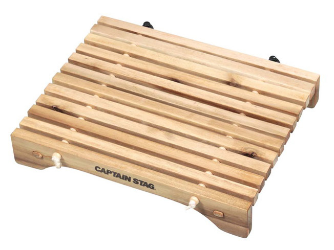 【デザイン】温かみのある天然木の木目が美しくシンプルです。 【使いやすさ】部屋でも屋外でも使えます。テントの中でゴロゴロしながら本を読んだり、飲み物を置いたりノートパソコンを置いたり。椅子に座って使うには少々低いですが地面に座ったり寝転がってるときは便利ですね。鍋敷きのようにも使えます(焦げますけが) 【サイズ】展開時:幅31cm 奥行25cm 高さ5cm 収納時:幅100cm 奥行き9cm 長さ33cmmm 【総評】コンパクトに畳めて運搬も楽なのでキャンツーや部屋でよく使えますね。ちょっとテーブルの中央をかさ上げしたい時にも使えて便利です。
