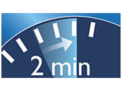 2 分のタイマーで、米国の歯科専門家が推奨するブラッシング時間を確認できます。
