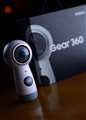 - モバイルアプリ「Gear 360」の使用により、撮影した映像をスマートフォンに転送して、動画の閲覧、編集が行えるほか、撮ったその場でシェアできる。