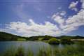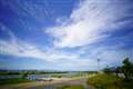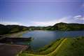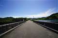 貯水池の堤防を撮影。 |