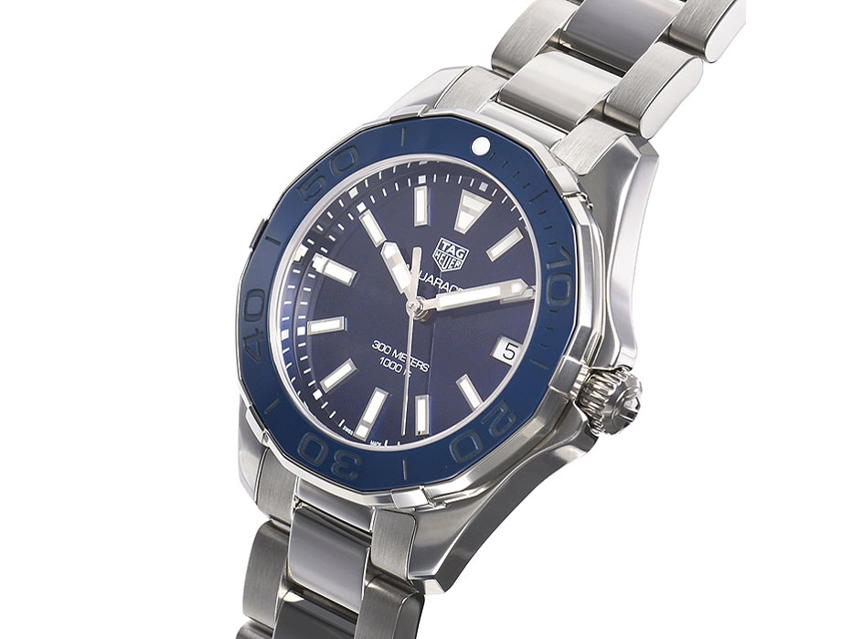 安心のアクアレーサーの35o版です 青のセラミックベゼルとブルーシェルが美しい1本です キラキラと変化するシェルダイヤルは魅力的です 300m防水と堅牢な造りも安心できますね レディースですがボーイズサイズでも行けそうです 重量は130g位か? 女性用としては重めですが付けた娘は気にならないそう それより目がキラキラしてます 店員さんと娘の圧が凄いですが今回は何とかパス 次回来てあったらねと逃げましたが素敵な時計なのは間違いありませんね
