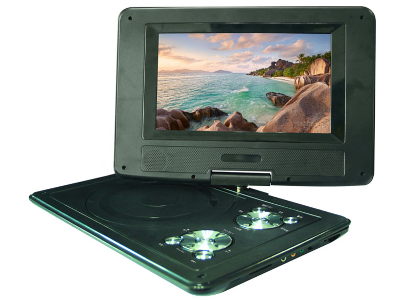 - AC/DC/バッテリーの3電源に対応した、折り畳み可能な8型ポータブルDVDプレーヤー。