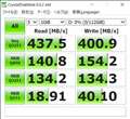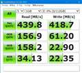 | 開封後使用開始前に測定 | フリーソフトでFAT32にフォーマットしてから測定 | CrystalDiskMarkでは、メーカー公称値を上回るスコアをマーク | AS SSD Benchmarkは相変わらず辛口なスコアだが、極端な落ち込みは見られなかった |