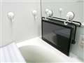 風呂場での使用例(ぶら下げるのではなく、引っ掛けて倒れないようにしています)