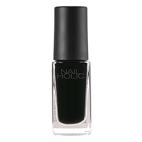 ネイルホリックから出ているこちらのネイルカラーを 購入しました。 ネイルホリックはどの商品もスリムサイズでコンパクトなので 何本持っていても嵩張らないので気に入っています。 黒色のカラーなのですが、黒色のネイルの中でも少し緩めの 感触のネイルカラーなので、一塗りだと少し透け感が出るので 真っ黒に仕上げたいなら重ね塗りすると綺麗に仕上がりました。 また、重ね塗りすると若干乾くのに時間がかかりました。 真っ黒なので少しインパクトのある爪になりますが、ツヤが凄く 出ているので、暗い色合いの割には重すぎない感じで良いと思います。 真っ黒なので単色でも良いですし、上から明るい色を重ねてドット 柄等絵柄を描いて模様を作っても映える色なので良いと思います。 また、色が黒色なので、重ね塗りして濃くせず、透け感あるそのまま でも個性的な仕上がりで、洋服にも合わせやすくて良いと思いました。