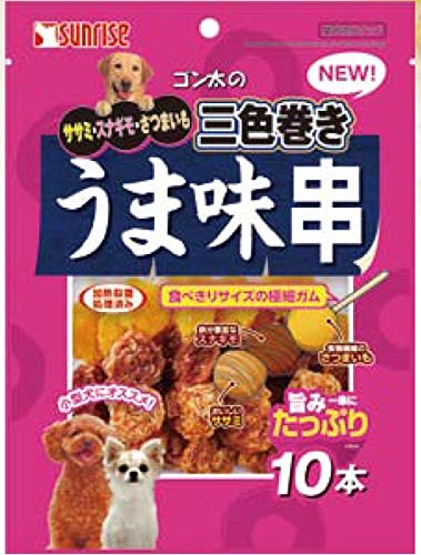 サンライズ ゴン太のササミ・スナギモ・さつまいも 三色巻き うま味串 10本 のクチコミ