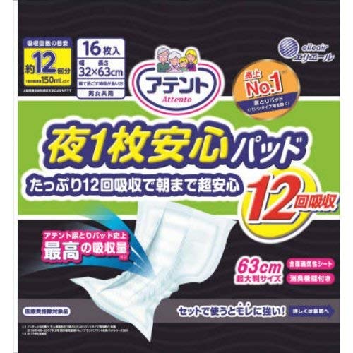 アテント 夜1枚安心パッド たっぷり12回吸収で朝まで超安心 12回吸収 16枚