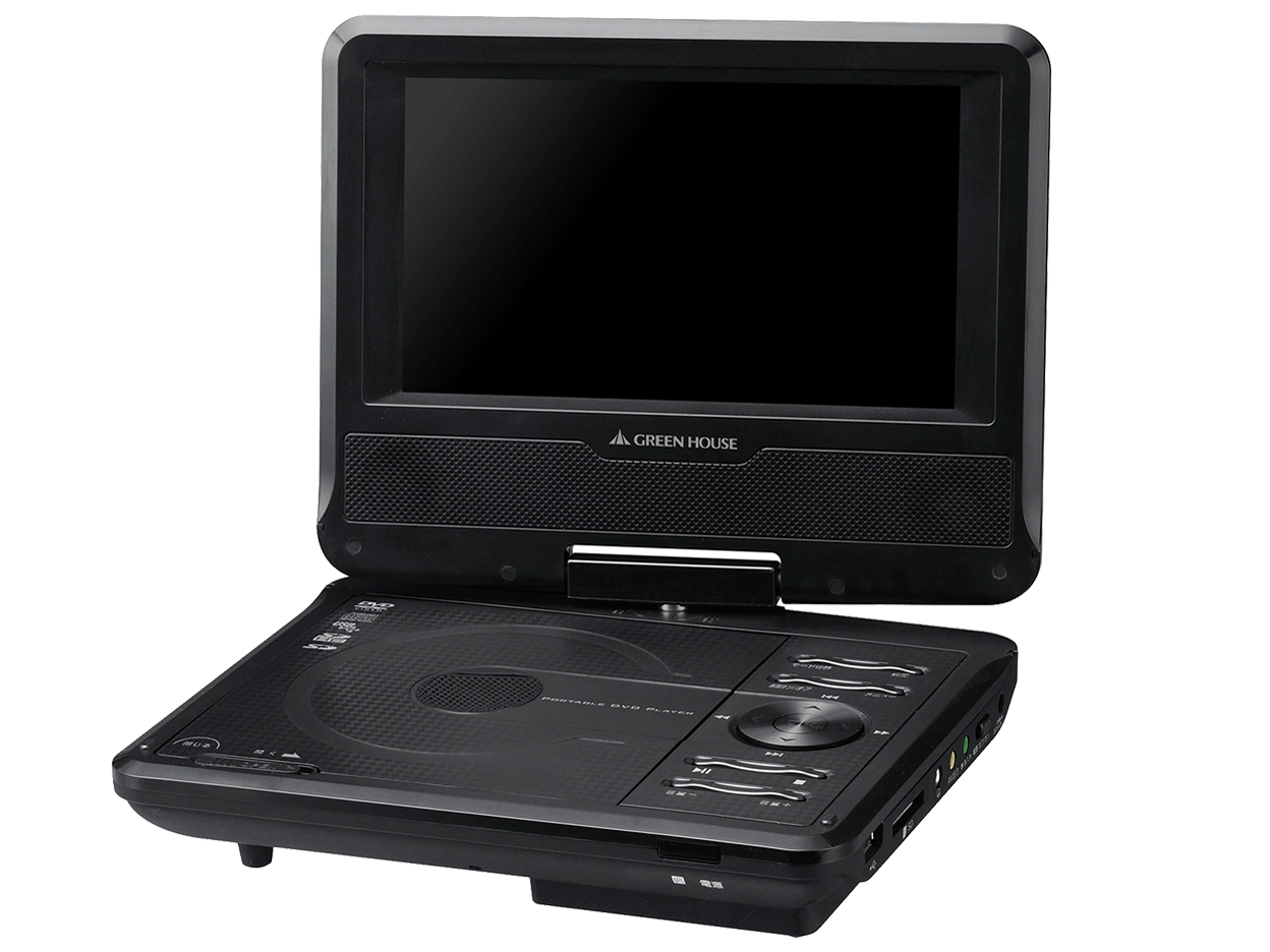- 7型ワイド液晶(180度回転可能)を搭載したポータブルDVDプレーヤー。車載用ヘッドレスト取り付けキット&シガーソケットアダプター、リモコンが付属。