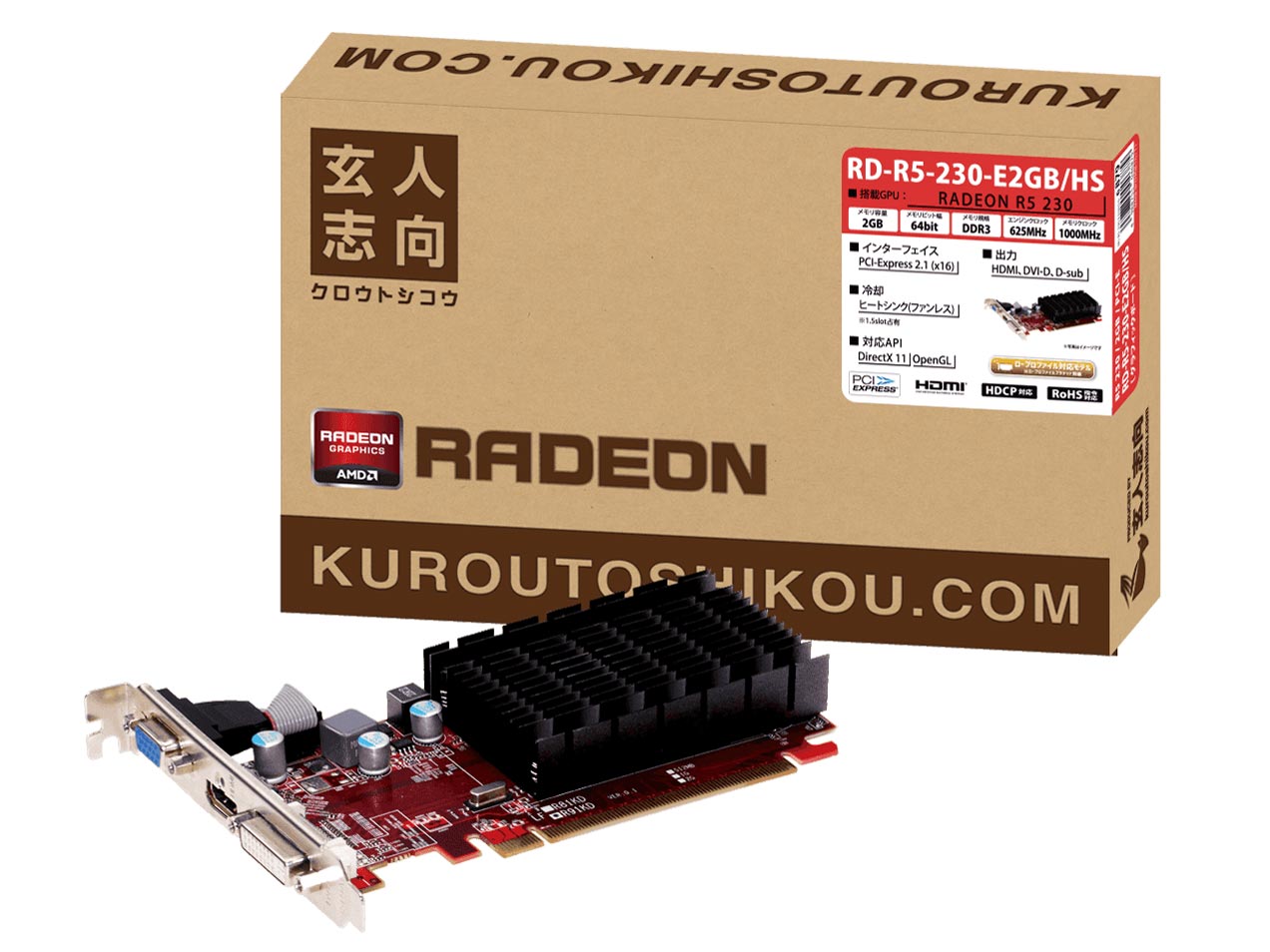 玄人志向、ファンレスビデオカード「RD-R5-230-E2GB/HS」