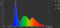 西川善司さん 白色LEDバックライトモデルではよく見られるスペクトラムだ |