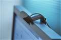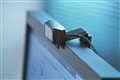 でんしろうさん 別売のフラップを付けて、モニター上に設置した様子 |