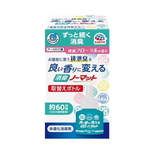 【消臭・防菌】 これまで使用していた芳香剤と比較して、消臭効果が体感で3倍にアップしました。特に、ニオイが気になる朝でも、トイレに入った際に不快な臭いを感じることはほとんどありません。 【持続性】 タイマーで1時間毎に15分間だけ運転していますが、24時間効果を実感できます。(連続運転すると匂いが強すぎてムッとします。本来は居間での使用を想定している製品なので、トイレの面積は狭すぎるのでしょう)これまでの芳香剤のように、時間が経つにつれて効果が薄れてしまうこともありません。 【香り】 爽やかで少し甘い香りがトイレ全体に広がり、家族からも「トイレが気持ち良い」と好評です。 【即効性】 便器からニオイが立ち上がる前に消臭してくれる感じで、非常に快適です。特に、来客時にも安心できます。 【総評】 介護用消臭剤は、トイレのニオイ対策に非常に有効であることが分かりました。コストパフォーマンスも高く、今後も継続して使用していきたいと考えています。1時間に15分だけ運転しているので寿命が4倍になり1年間使える計算ですが、揮発性のため、効果の持続期間は製品の寿命よりも短くなる可能性があります。