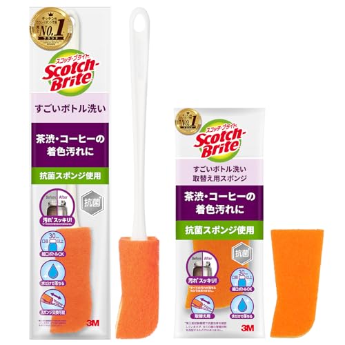 スコッチブライト すごいボトル洗い 本体+取替え用スポンジ1個セット MBC-03K&R