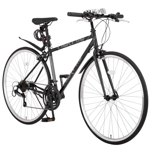 3.11の時に買ったママチャリは錆て、また、3段しかないので ほぼアルミの多段ギヤで泥除け付きの本製品にしました。 【デザイン】【乗り心地】【操作性】【使用パーツ】【走行性能】【軽さ】【メンテナンス性】 SIMANO(made in japan) 前3段X後7段=21段 あと中華 2万だもの ママチャリより安いので 十分満足 【総評】 運動不足解消と電車に乗りたくないので、 ビックカメラ等大型汎用店舗では、電動自転車ばかりで ロードバイク等置いていないし、コロナの影響で取寄せでも 生産の見込みが立っていないので、通販で頼んだら、次の日に来ました。 組立は1時間で出来ますが、前ギャがLOWに入らないので、ピンが外れていた。 持込修理工賃は3000円まで持つとのことなんで、ビックカメラにてサービスで直してもらったが、 やはり、LOWに入らないので、技術屋のプライドにかけて直した。 サポートの対応も早いので、お勧めです。 おまけのLEDライトと鍵は100円ショップでほぼ同じものが売っていますので、 付け替え可能です。 フルカーボン、フルアルミなら日本製だけどね。価格も一桁以上違いますけどね。 追伸 考える事は同じですね。 4/24 20時 現在 売切れ ドイツの電撃部隊より早い銀輪部隊 進撃速度20km/日 但しジャングル