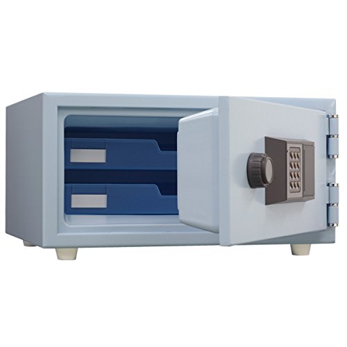 【デザイン】 小型据え置き式で主に家庭用ですね。 【扱いやすさ】 テンキー式で簡単に扱える。 【耐久性】 ― 【セキュリティ】 暗証番号は4〜8桁で2種類設定できる。 【総評】 A4サイズが入ります。 紙の耐熱試験で1時間をクリア。 電子式テンキーなので電池が要ります。 サイズ的に家庭用としてちょうどいいかな。 仕様 ●サイズ内寸:幅343mmx高さ127mmx深さ256mm。 ●サイズ外寸:幅437mmx高さ235mmx奥行397mm。重さ28kg。 ●施錠方式:テンキー式 ●容量:11リットル ●トレイ:2 ●電源:単三乾電池x4