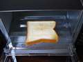 mame1224さん トーストモード【中】で焼いた超熟山型5枚切りの表面。2枚で焼き時間3分。(写真@) |