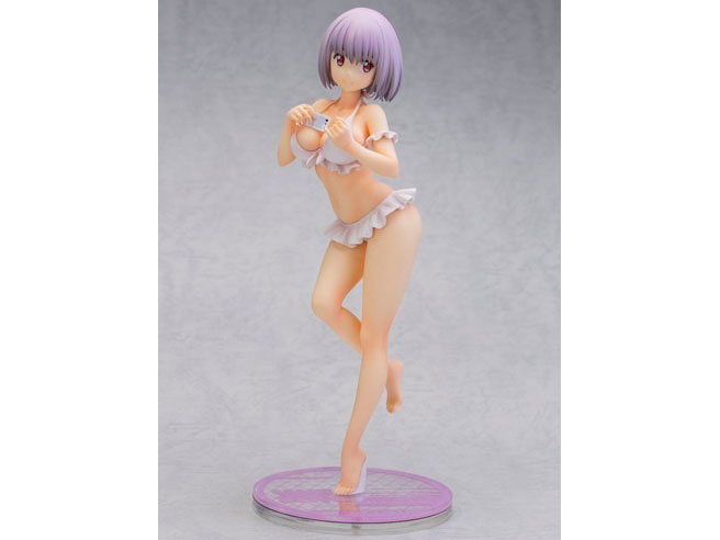 1/7スケールで全高約24cmとかなり大きいです。 水着かつシンプルなポーズであえてボリュームを出さず シンプルにまとめあげたのは実にアルファマックスらしい 感じ。良くも悪くも見本に近い感じです。ここはいつも 見本段階からずば抜けた出来ではない。が、見本だけは良い メーカーよりは格段にマシだと思っている。 造形は原作より若干細めな印象を受けるのとバストは豊満 だがポーズで手で胸元が隠れる感じになっているのがもったいない。 こういう方が良いという人もいるだろうが、せっかくバストが ウリの子なのだから、手の位置はバストが隠れないポーズが良かった。 全体的に上半身と下半身のバランスを重視した感じ。要するに 全体のプロポーションは良い。水着も凄くシンプルだがそれゆえに 全身を堪能出来る。 顔もまあまあかな。アルファマックスはいつも顔が他のメーカー と違う方向性なのだが、似て無くても悪くないというパターンが 凄く多く今回もそれに近い感じ。 見本で気に入ったら買って損は無いと思う。