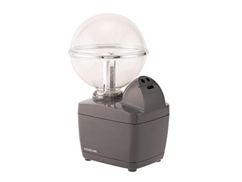 乾燥を和らげるには、いつでも、どこでも手軽に、使えて 本当に重宝するパーソナル加湿器です。 USB式ではなく、AC電源で稼働する加湿機になっているので、 パソコンなどが無くても、コンセントさえあれば、誰でも使うことが できます。ACアダプターは付属されています。 タンクは大きめ550MLあるので、強で使った場合でも、5時間半 大丈夫なので、小まめに水を継ぎ足す必要がなく助かります。 加湿の調整は弱〜強で無段階調整できるが嬉しいです。 タンクは球の形をしていて、デザイン的になかなか気に入っています。 この標準のタンクのほかにも、500mLのペットボトルも使えるようになって いるところが面白いです。タンク(ペットボトル)と本体のとの 接続部にはLEDランプがあるので、スイッチをONにすればイルミネーションも 楽しめます。私はまだ利用していませんが、アロマケースも搭載されているので アロマオイルがあれば、加湿にくわえて、香りを楽しめるようになっています。