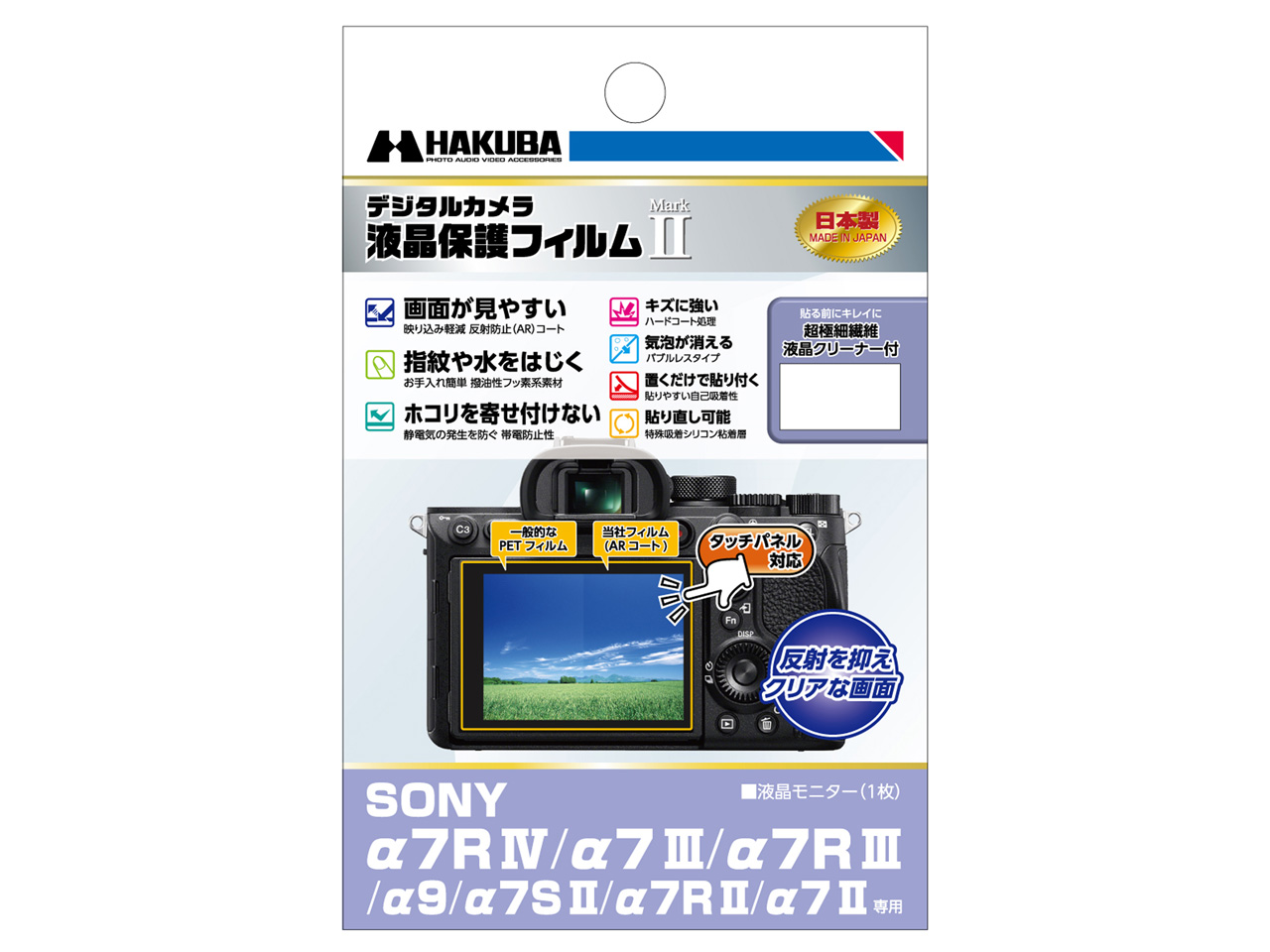 α7RW用に購入しました。 同社の保護ガラスを購入したのですが、 使ているうちに損傷してしまったのでこちらに張り替えました。 使用感覚も問題なく、 他のカメラでは10年ほど使用してますが、耐久性も問題ありません。 安価ですが液晶の見えも問題なく、優良商品だと思います。