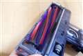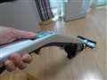 多賀一晃さん ハンディ掃除機。確かに片手持ちは可能だが、大きい。 |