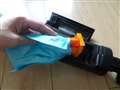 神野恵美さん 地味に改良されている紙パックの着脱方法。中身がこぼれ出にくくなった |