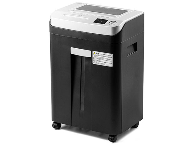 家庭用としてつかえるシュレッダーが欲しかったですが、 卓上タイプでは、パワーにかけるので、やや大きめですが、使い勝手もよい このシュレッダーにしました。 大きいといっても、ダストが22Lサイズ(外寸で幅376x置奥268xH560) ですのでそれほどでもありません。キャスターもついているので、移動も楽です。 細断の方は、用紙をセットするだけで自動で細断してくれます。 A4用紙の場合で、自動給紙が80枚までOKなので、たくさん シュレッダーにかけたい時に、便利です。もちろん、手差しもでき、 A4の場合で6枚まで一度に細断できます。ホッチキスが付いたままでも 細断できるのが便利です。 また、通常のクロスカットよりさらに細かいマイクロカット(12mmx2mm)なので、 情報漏洩の点で、とてもセキュリティーが高く安心です。 紙の細断のほかに、CDやDVDなのでメディアも細断できるようになっています。