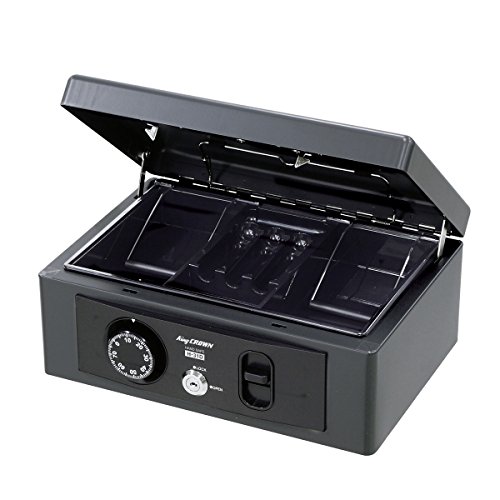 この手提げタイプです。ダイヤルの鍵が付いており、セキュリティ面でいいと思います。 外寸は幅315×奥行235×高さ133mmで、内寸は幅275×奥行175mmと、かなり容量が大きく、色々なものが入りそうです。がっしりとした作りから耐久性や使い勝手もよさそうです。 この金庫は、手軽に持ち運べるサイズでありながら、十分な容量を持っています。また、取り出しやすい配慮がされているため、中に入れたものを取り出しやすいように設計されています。 ダイヤル式のロックだけでなく鍵式のロックも付いており、より高いセキュリティを求める方にも安心して使えます。