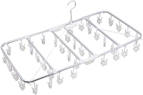 【総評】 巨大なハンガーですよ、長辺は70cm以上もあります。 ピンチが40個もぶら下がっているし。 ピンチは取り替えできますよ、これは便利ですね。 本体フレームはアルミ製です。だからとても軽いけど。 下着でもTシャツでも靴下でもなんでも干せますね。 Tシャツは襟を引っかけて干しますので乾いたら変形してるけど。 まあ、いいでしょうということでね。自分で納得しています。 さすがに一度の洗濯で40個も干すことはないけど。 前回の洗濯でしまい忘れがぶら下がってることもありますので。 なぜかしまい忘れというか干しっぱなしにすることも多いですね。 そのときはベランダから部屋の中に移動しているけど。 すっきり下折れ式折りたたんでフック収納もできます。