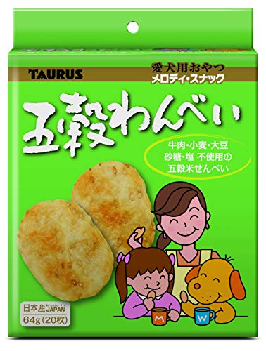 Amazon.co.jpにて404円で購入。 普通のパッケージが赤いわんべいと比べると、まず 形が違います。普通のわんべいは、形が丸いのですが。 この、黄緑色のパッケージの五穀わんべいは俵型。 それと、開封しておいしそうな香りがします。 味は薄味ですが、食感がいい。 愛犬に個包装の二分の一枚、半分の半分、 1枚の4分の1を味見(わんべいは、わんちゃんも人も食べてOKなので) 愛犬の反応:最初は、いつものわんべいと違うと においをかんで、少しずつ口に入れてポリポリといい音で食べており。 そのうちに味と触感が気に入り、食いつきもよくなりました。 ワンちゃんは、毎日きまったドライフードで食べが悪くなる、という 悩みを抱えているお宅も多いかと思います。我が家の愛犬も そうなのです。ごほうびとしてわんべいを与えています。 育犬本では、普通の味のわんべいがおすすめ・安心して愛犬に 与えられると書かれていて買いましたが。個人的に栄養バランスが 優秀そうな今回の五穀わんべいも買い与えてあげたかったので、満足です。 以前犬を飼っていた時とは違って、最近は豊富な選択肢がありますが。 甲斐犬の7か月過ぎの男の子の口には合いました。