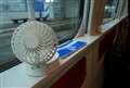 関口 寿さん 操作は1ボタンのみ。ファンガードに覆われるので輸送中に誤作動する心配はない |