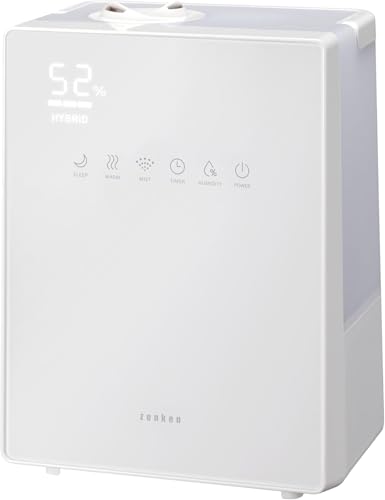- 超音波式+ヒーター搭載のハイブリッド方式の加湿器。ヒーターで高温加熱した水を超音波の振動できめ細やかな温かいミストにして噴霧。
