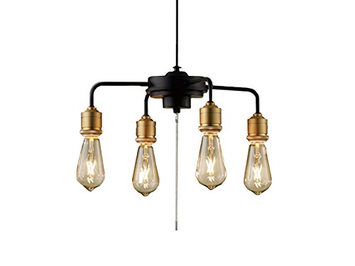 【総評】 これはおもしろい形の電球が下がっていますね。 まるで真空管を逆さまにしたみたいですね。 これがフィラメントLEDと云うのですか? フィラメントがゆらゆらと光を放っています。 それを4灯搭載のシャンデリアですね。 フィラメントランプでヴィンテージ空間を演出だそうですよ。 たしかにねヴィンテージ感はたっぷりと漂っていますけど。 しかし、いくらLEDでも4灯で10Wですからね・・・・ 暗すぎますね・・・・・・・ だから照明器具としてではなくムード演出用ですね!!! プルスイッチです。 点灯パターンは全灯→2灯→消灯。