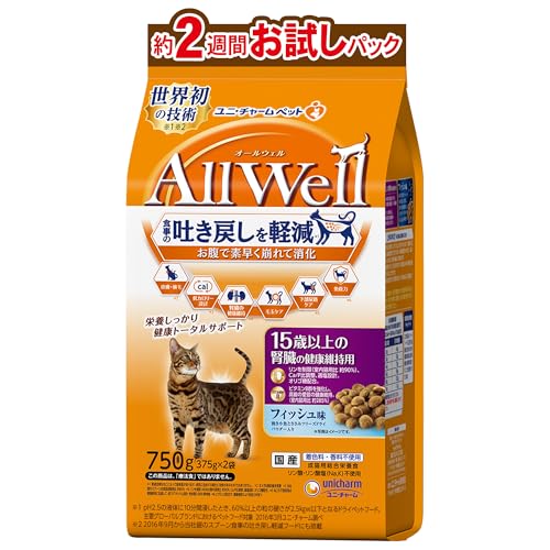 AllWell 15歳以上の腎臓の健康維持用 フィッシュ味 挽き小魚とささみフリーズドライパウダー入り 750g(375gx2袋)