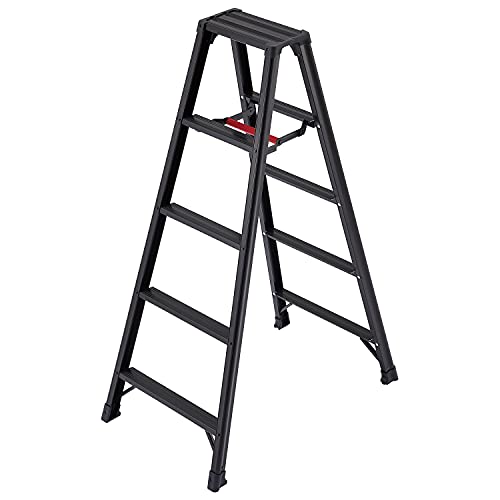 【安全性】 黒いアルミ製はとても頑丈に見えます。 事実がっちりした造りです。 安全性はきちんと担保されてる。 【品質・強度】 補強材も黒いので分かりにくいけどきちんと補強はされている。 【持ち運びやすさ】 簡単に運べる造りですので容易です。 【サイズ】 天板サイズ32.6cmx16.2cm。外寸幅58cmx高さ147cmx奥行き17cm。重さ5.2kg。 【総評】 はしごにはなりませんので脚立専用です。 踏ざんの幅が広いのが目についた。(55mm)あります。 それと天板がほぼフラットになるのも良い点。 座るのも楽に座れるし。 見た目もいいし使いやすい脚立でした。