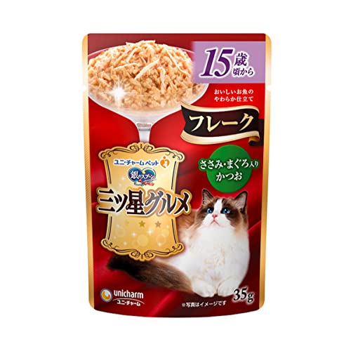 銀のスプーン 三ツ星グルメ パウチ フレーク 15歳頃から ささみ・まぐろ入りかつお 35g