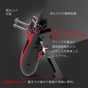 また、左右分離型のグリップに可変式スタンドを装備しており、手持ちでも、机などに置いた状態でも使用できる。