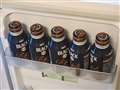 | キッチンと洗濯機の間にピッタリ収まりました。まさにシンデレラフィット(笑) | ドアポケットにボトル缶のコーヒーがちょうど5本収まります。 |