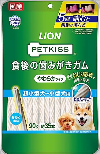 ペットキッス 食後の歯みがきガム やわらかタイプ 超小型〜小型犬用 90g(約35本)