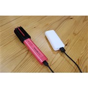 - 髪に熱をしっかり伝える金属製のホットピンを採用した、最高温度180度のUSBコンパクトブラシアイロン。モバイルバッテリーに対応。