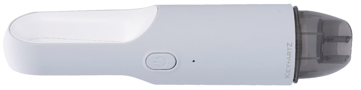 - 握りやすい太めのハンドルに親指で楽に押せる電源ボタンを備えた、紙パックレス式コードレスハンディークリーナー。