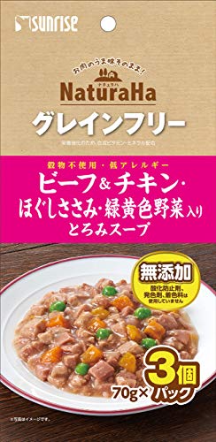サンライズ ナチュラハ グレインフリー ビーフ&チキン・ほぐしささみ・緑黄色野菜入り とろみスープ 70gx3個