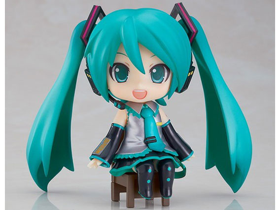 「初音ミク」のねんどろいどシリーズです。 特徴であり青緑色の長いツインテールにノースリーブの襟付き上着にネクタイ、ミニスカートにローヒールのサイハイブーツは色も含めきちんと再現されています。 ツインテールはつける際に少し力が必要ですので壊れないようご注意ください。 仕上がりは可愛く、椅子に座った初音ミクが可愛く笑顔を振りまいてくれます。 デスクの上は勿論のこと、イスを活かして机の角部分に座らせることもできます。