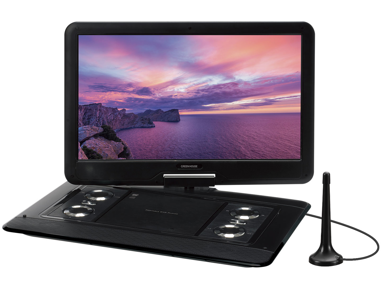 - 180度回転して折り畳んでコンパクトに視聴できる、15.6型ワイド液晶(1366×768)搭載のポータブルDVDプレーヤー。